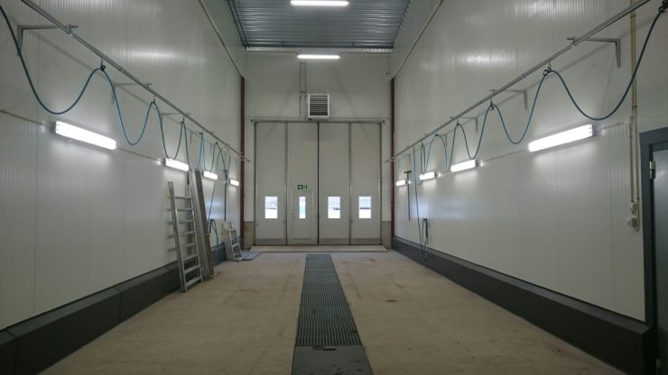 Miljögodkänd tvätthall för snabb och bekväm rengöring även av de största maskiner.